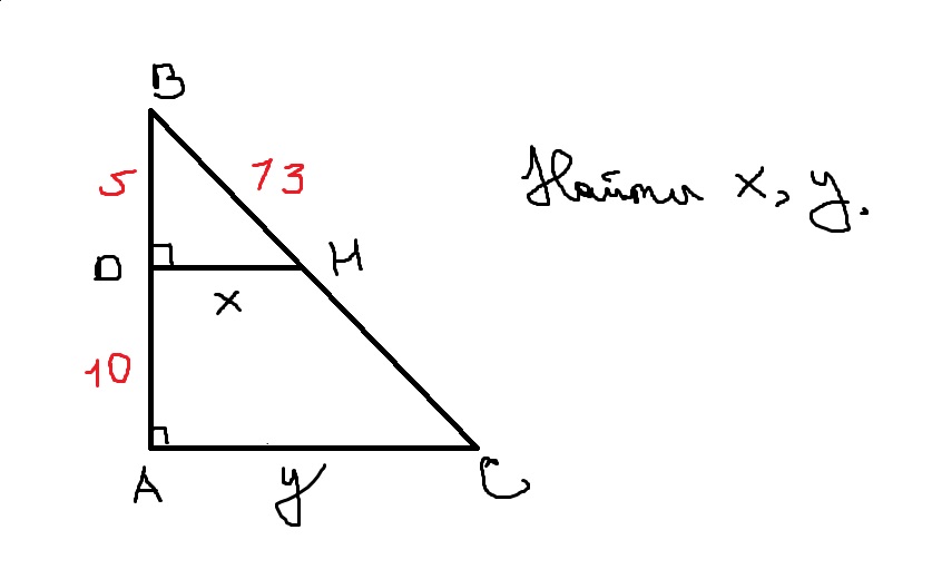из подобия треугольников: AC:DH=AB:DB, у:12=10:5, у=24