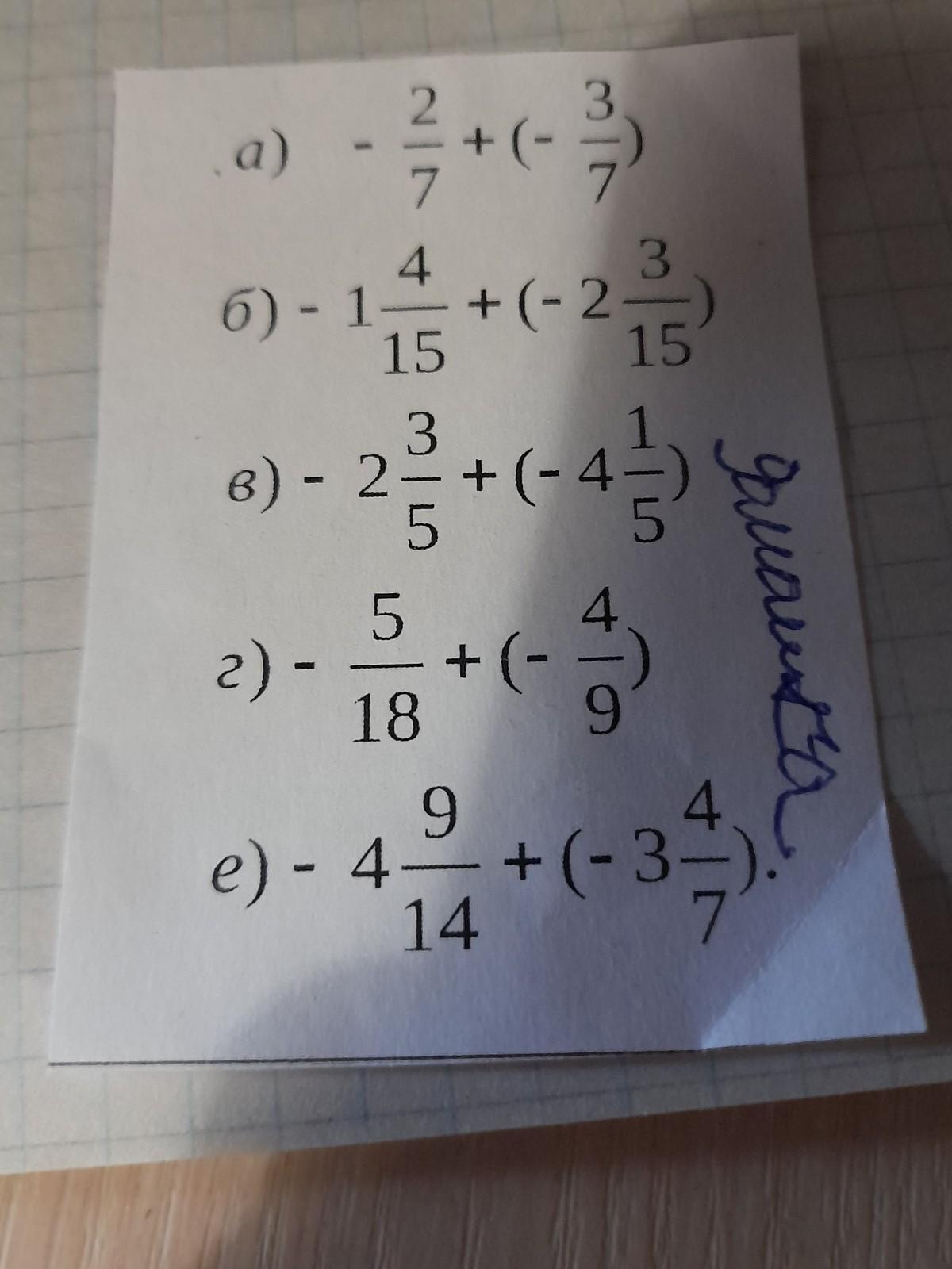 -2 3/5 + (-4 1/5) = -(2 3/5 + 4 1/5) = -6 4/5;