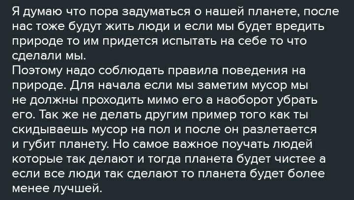 Therefore we have to follow the rules of conduct in nature. If you notice the rubbish , you must take it and throw it in a trash. Moreover you have to show other people how we have to do to change our planet, and It would be more clean and better.