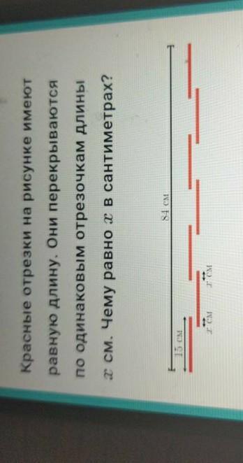 Красные отрезки на рисунке имеют равную длину. Они перекрываются по одинаковым отрезочкам длины x см. Чему равно хв сантиметрах? 84 см E 15 см СА СМ