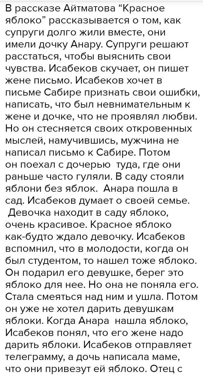 4. Символическое значение ЯБЛОКА в рассказе Ч. Айтматова «Красное яблоко» раскрывается в… А) рассказе юного героя о жизненных уроках B) рассказе старика об уроках нравственности и доброты C) истории о непростых отношениях в семье D) рассказе о необходимости изучения иностранных языков