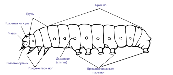 Гу́сеница — личинка насекомых из отряда чешуекрылых, или бабочек. С гусеницами сходны ложногусеницы — личинки пилильщиков (группасемейств из отряда перепончатокрылых). В отличие от гусениц, у ложногусениц пилильщиков брюшные ноги развиты на II—X сегментах брюшка.