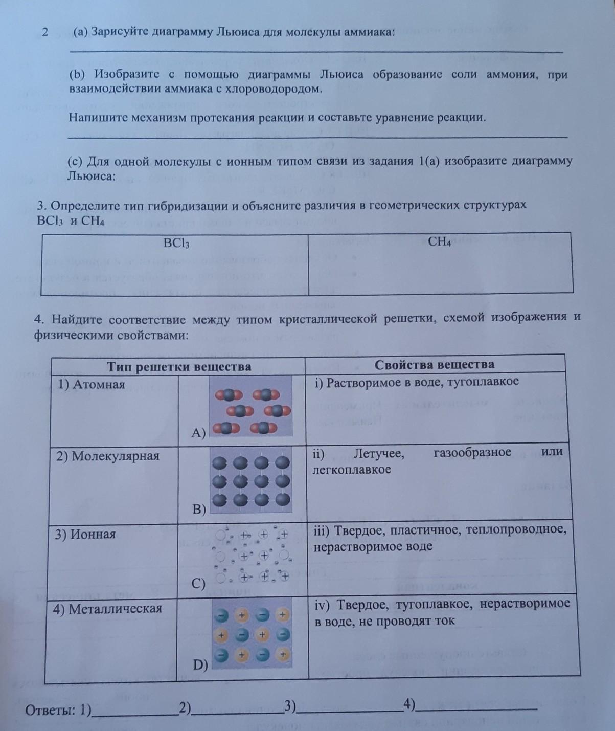 2 (а) Зарисуйте диаграмму Льюиса для молекулы аммиака: (b) Изобразите с помощью диаграммы Льюиса образование соли аммония, при взаимодействии аммиака с хлороводородом.