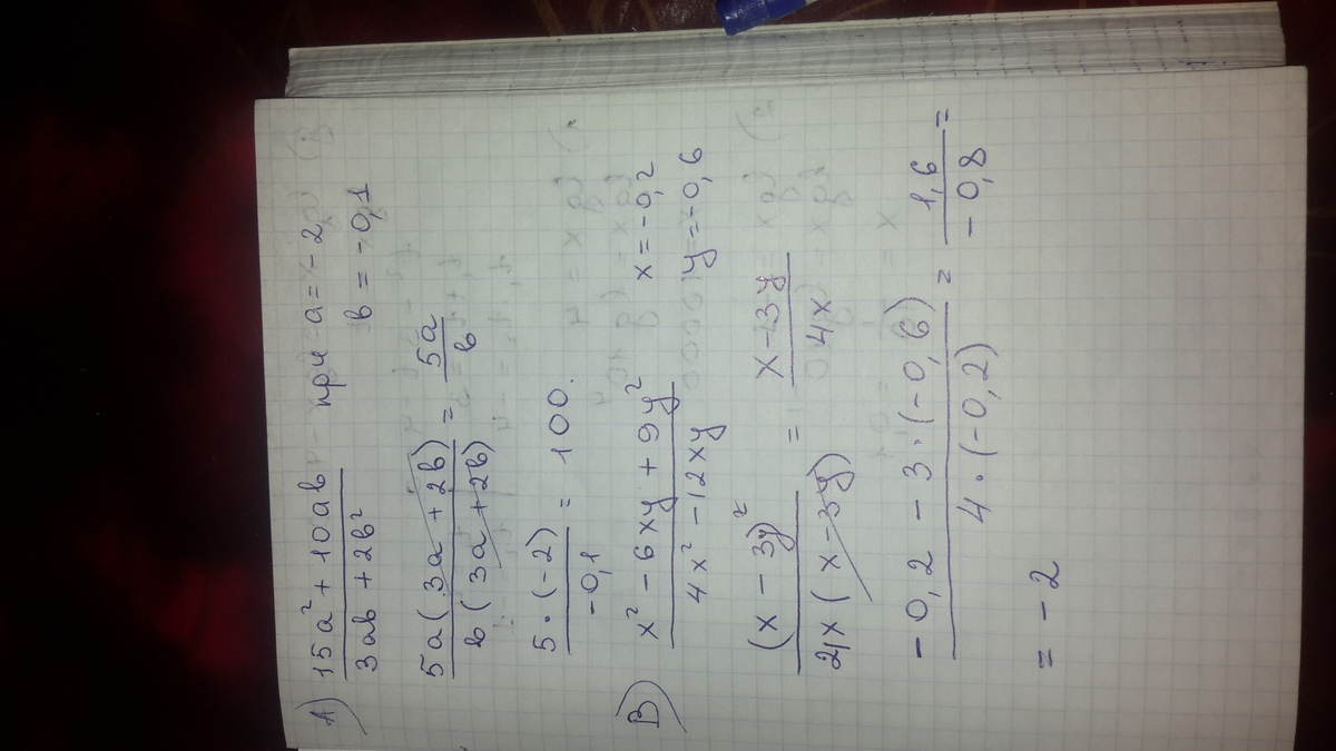A)15a^2+10ab/3ab+2b^2 при a=-2, b=-0.1