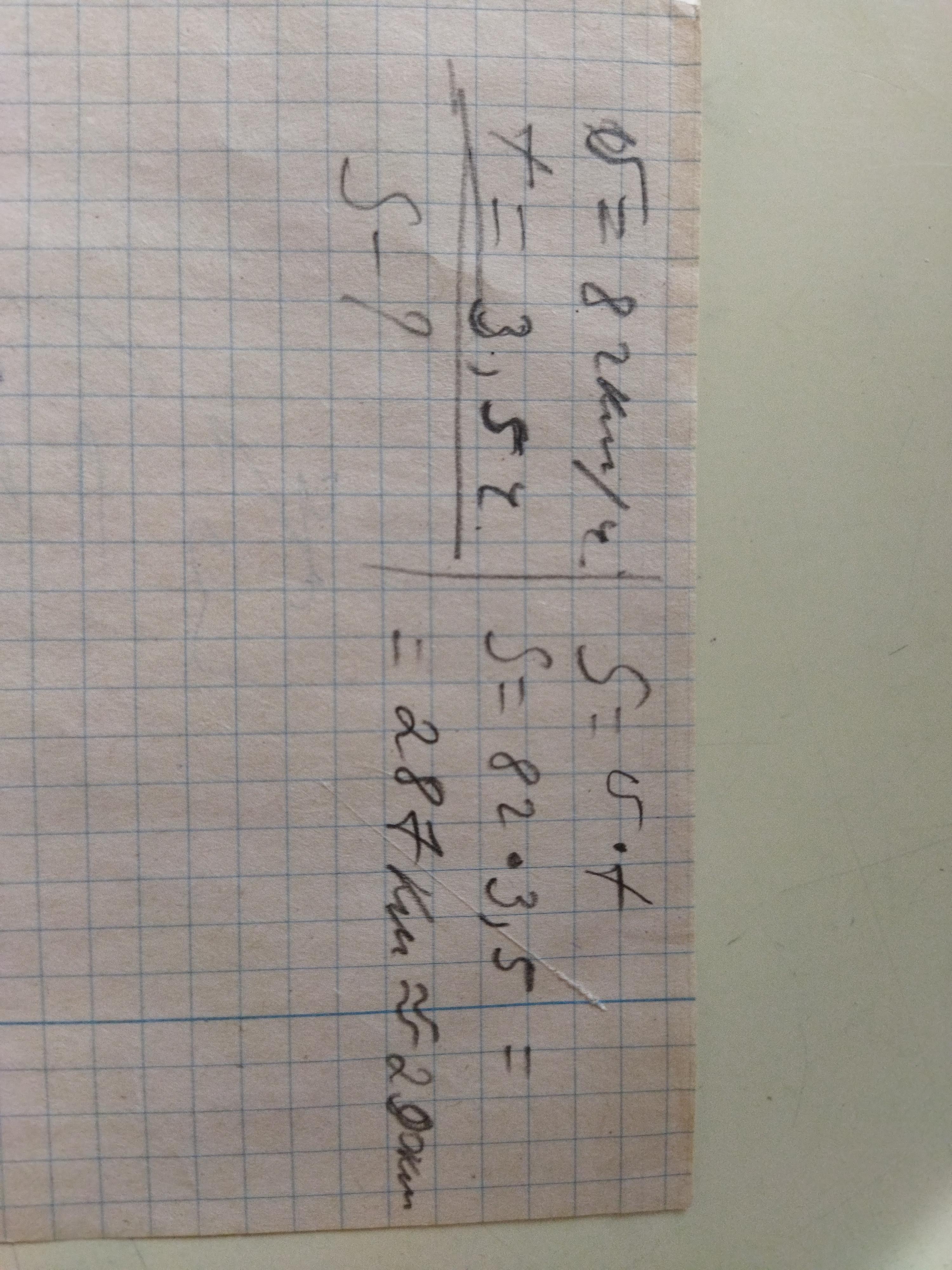 Водитель автомашины установил круиз-контроль и ехал на пикник со скоростью 82 км/ч. В пути он провел 3,5 часа. Какое расстояние проехала автомашина? Автомашина проехала расстояние s= км. Результат округли до десятых