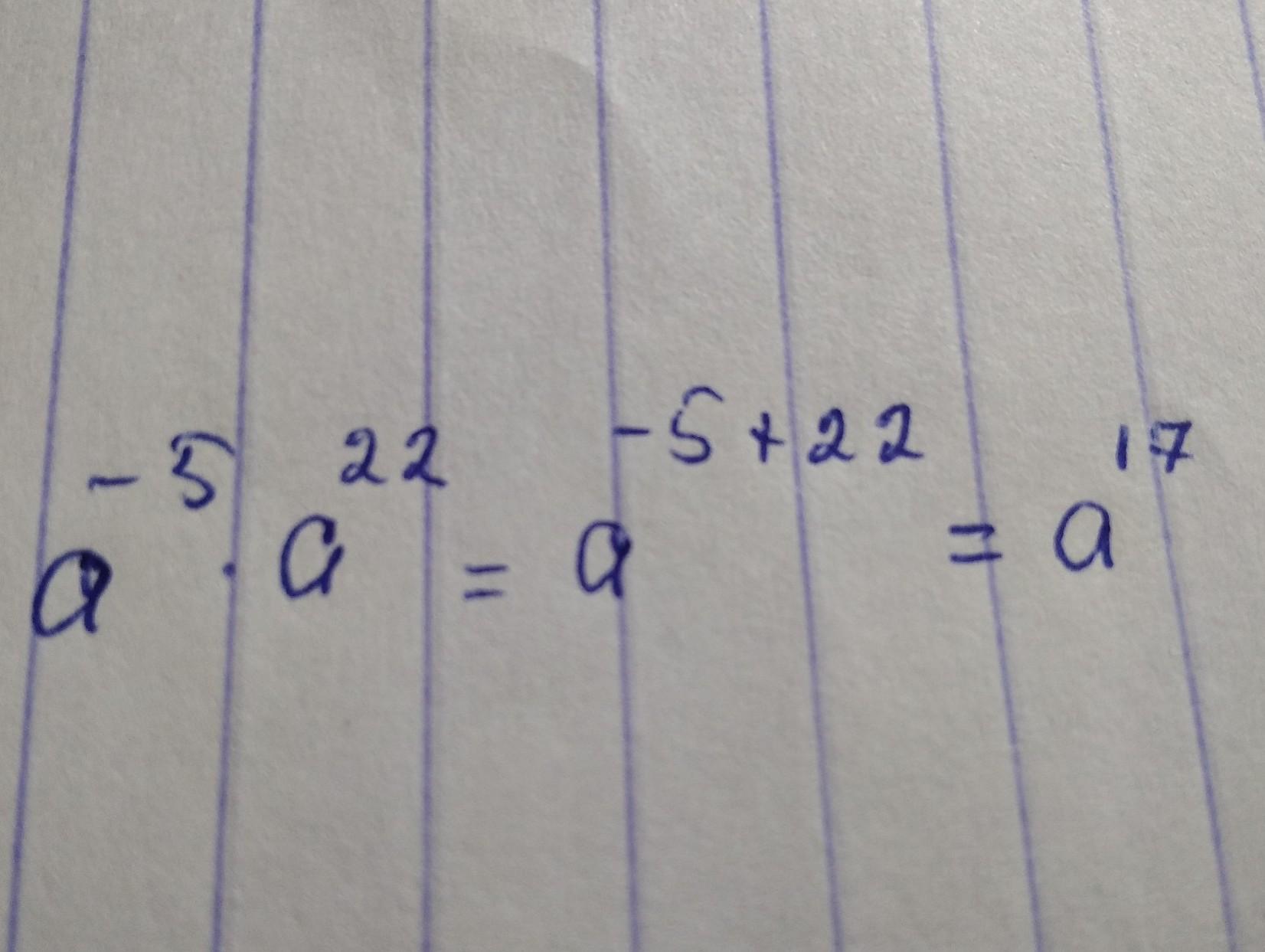 при умножении степени складываются. то есть a^-5*a^22=a^-5+22=a^17