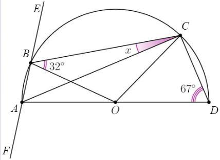 △ACD: ∠ACD=90 (опирается на диаметр AD). ∠CAD=90-67=23