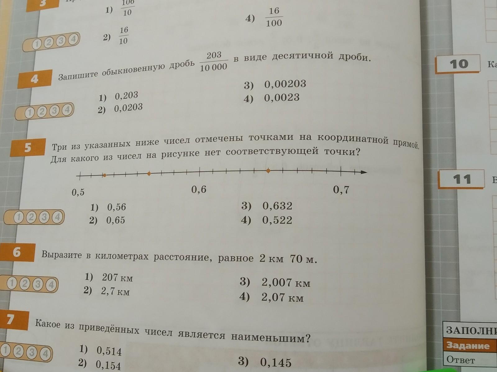 5 Три из указaных ниже чисел отмечены точками на координатной прямой Для какого из чисел на рисунке нет соответствующей точки? 0,5 0,6 0,7