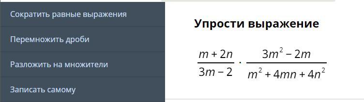 Проверьте сокращение Ответ будет m/m+2n