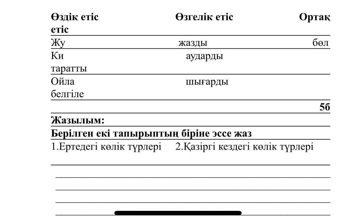 Өздік етіс Өзгелік етіс Ортақ етіс Жу жазды бөл Ки аударды таратты Ойла шығарды белгіле
