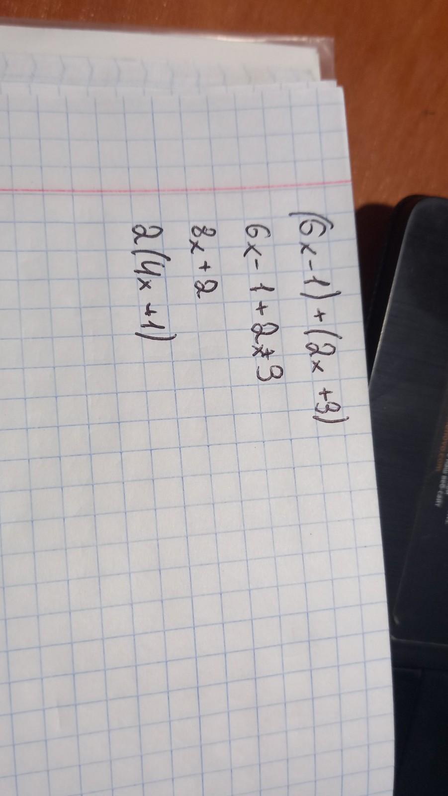(6x-1)+(2x+3) Раскройте скобки и приведите подобные слагаемые пожалуйста с пояснением