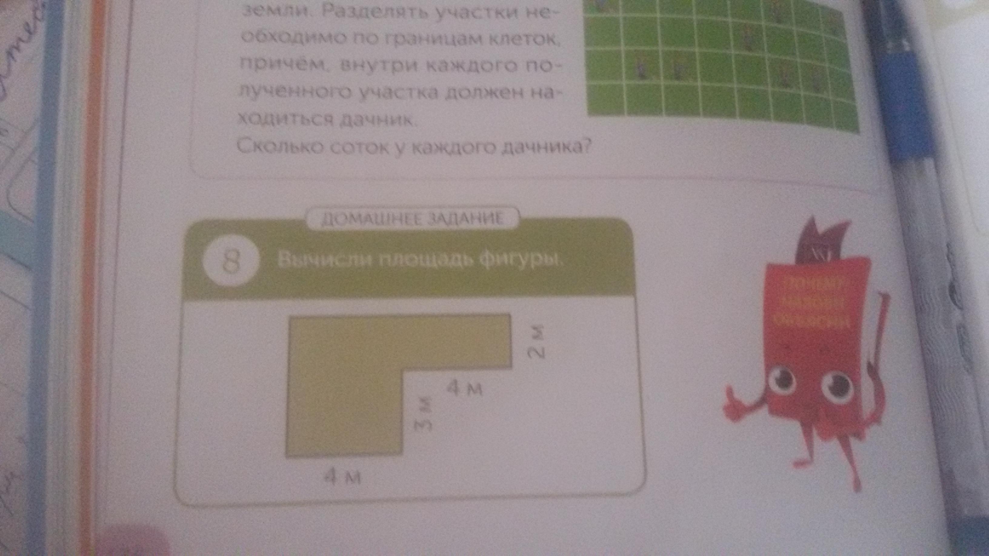 С начал вычисляет площадь большого прямоугольника 4 * (3+2) = 20 и потом второго 2*4 = 8. 20+8 = 28