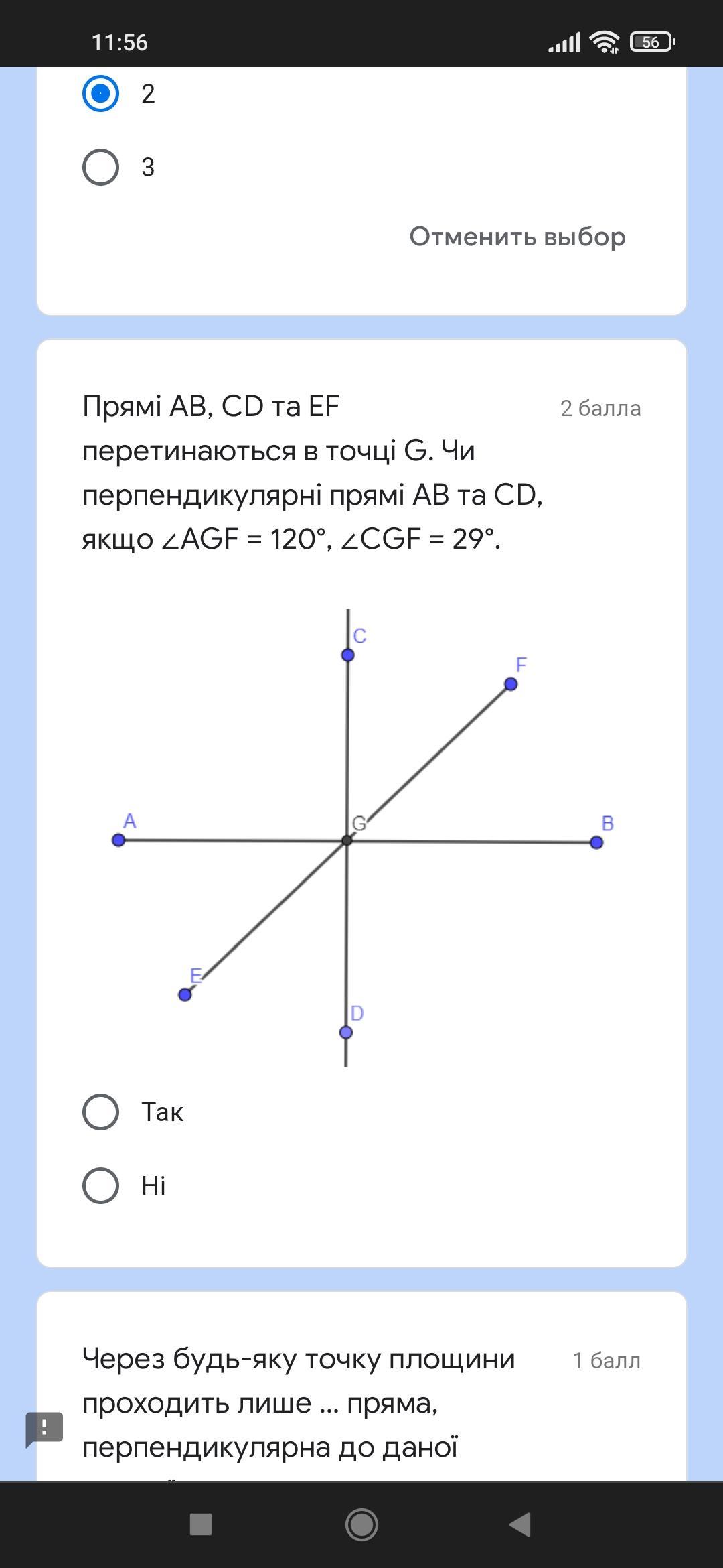 перетинаються в точці G.4 V перпендикулярні прямі АВ та CD, якщо angle AGF=120^ angle CGF=29^