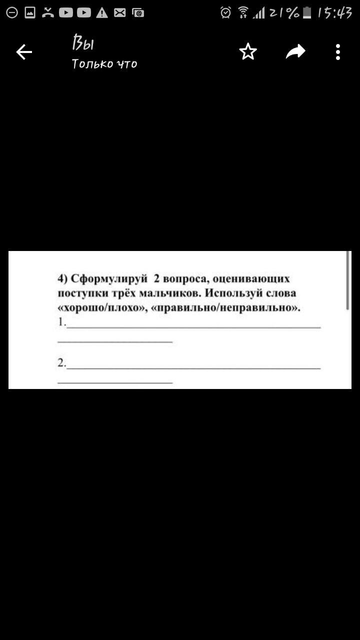 Сформулируй 2 вопроса, оценивающих поступки трёх мальчиков. Используй слова «хорошо/плохо», «правильно/ неправильно». 1.Неправильно поступили мальчики? 2. Хорошо поступил мальчик? 1. Плохо ли поступили мальчики? 2. Правильно ли поступил мальчик?