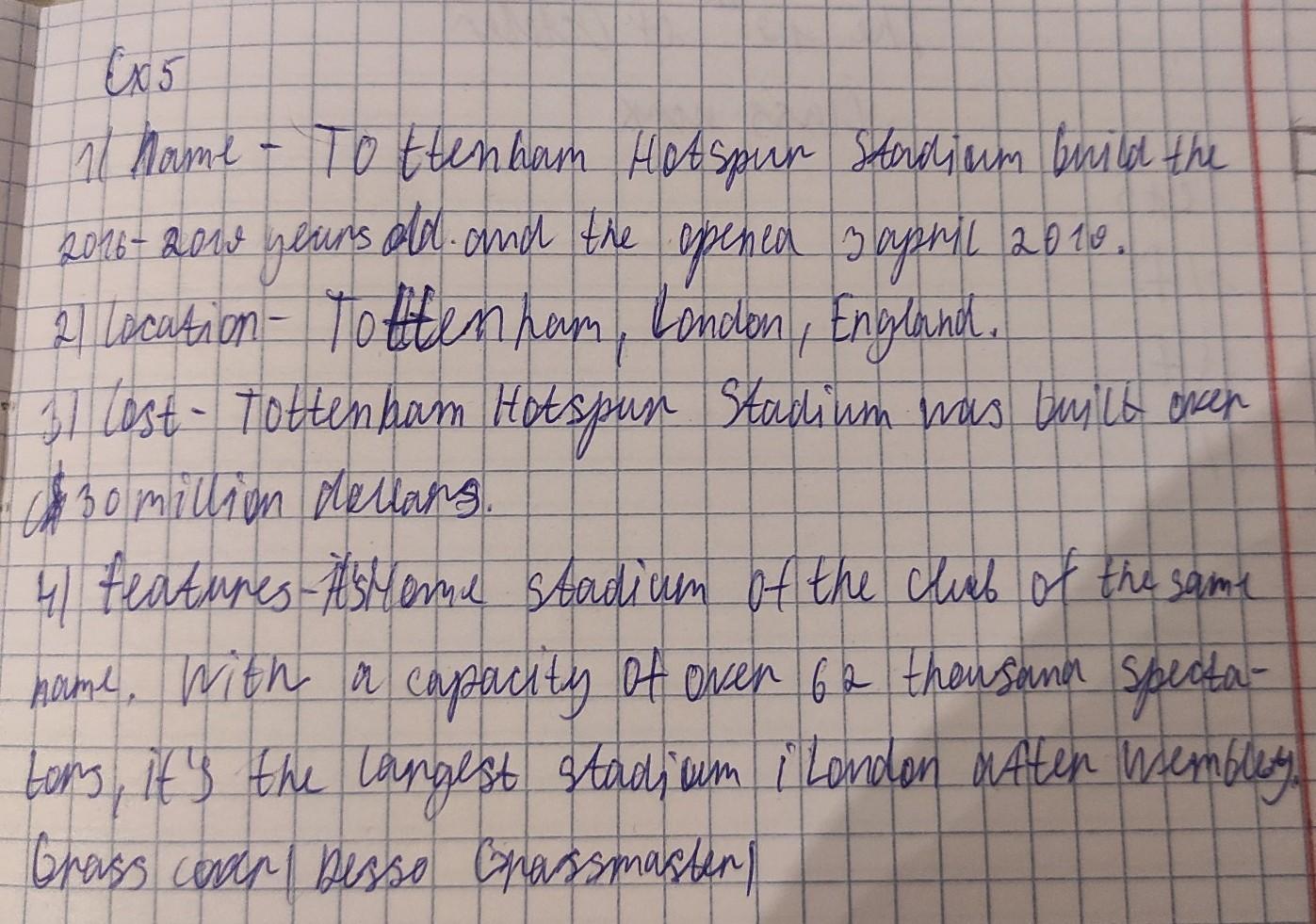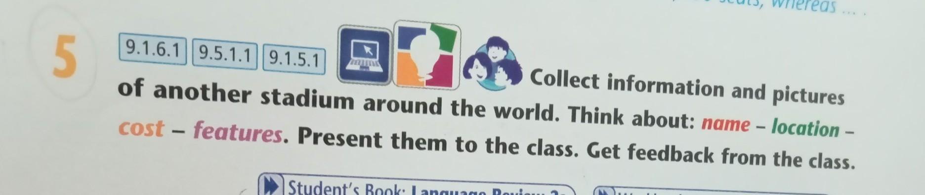 Collect information and pictures of another stadium around the world. Think about: name - location - cost – features, Present them to the class. Get feedback from the class. - KODULE 2помогитеееееее срочноооо!!!!!!!