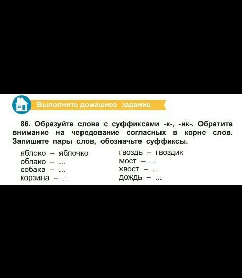 образуйте слова с суффиксами -к - ик обратите внимания на чередования согласных в корне слов запишите пары слов обозначьте суффиксы
