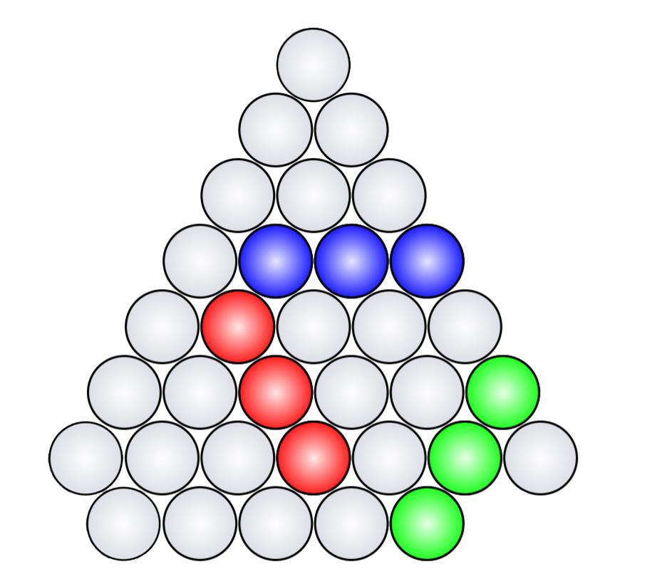 Дана фигура, состоящая из 33 кругов. Нужно выбрать три круга, идущих подряд в одном из направлений. Сколькими способами это можно сделать? На рисунке приведены три способа из искомых.