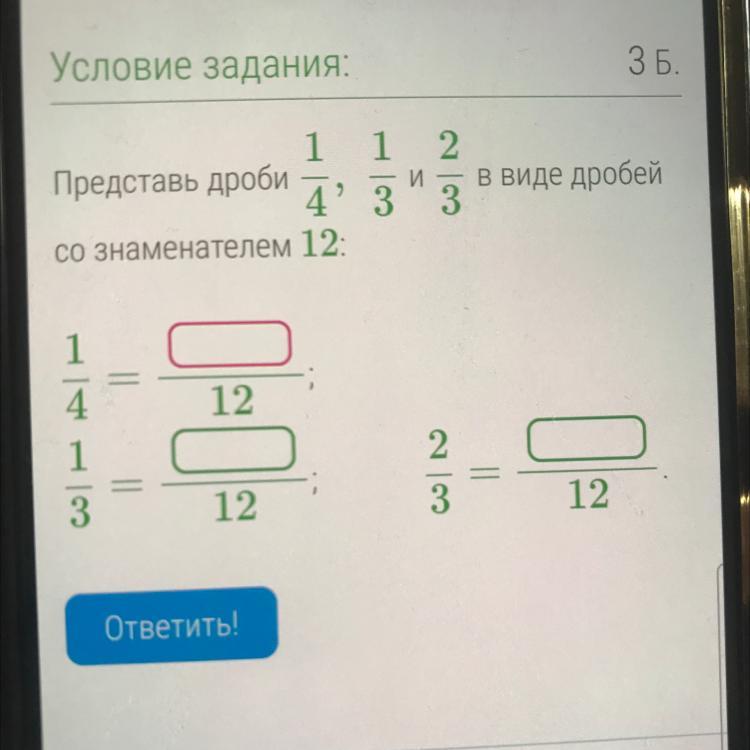 1/4 = 3/12; 1/3= 4/12; 2/3=8/12;