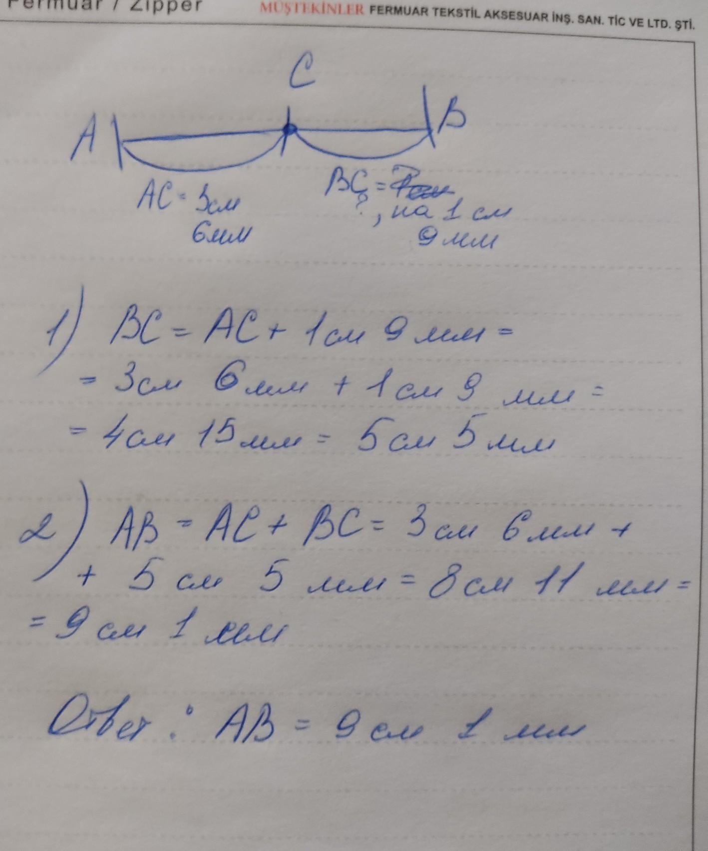 2 действие : чтобы найти длину отрезка АВ нам нужно сложить отрезки АС и ВС