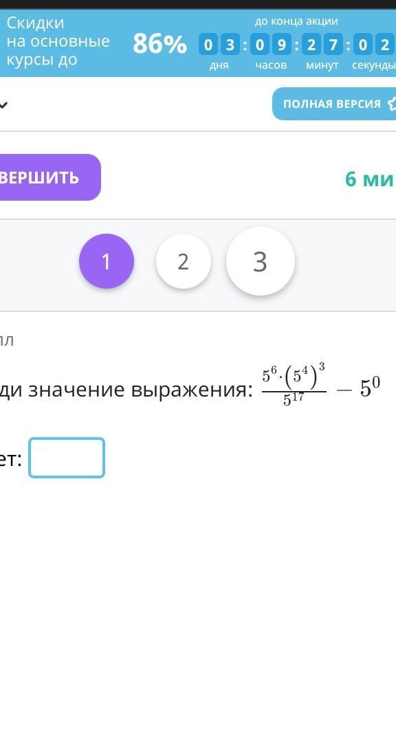 \dfrac{5^{6}\cdot(5^{4} )^{3}}{5^{17} } -5^{0} =\dfrac{5^{6}\cdot5^{12} }{5^{17} } -1=5^{6+12-17} -1=5-1=\boxed4