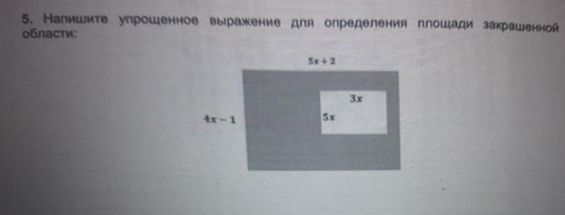 Sзакрашенного=Sб-Sм=20х²+3х-2-15х²=5х²+3х-2