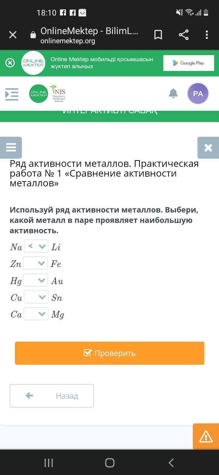 Используй ряд активности металлов. Выбери, какой металл в паре проявляет наибольшую активность.