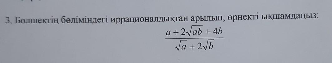 3. Бөлшектің бөліміндегі иррационалдықтан арылып, өрнекті ықшамдаңыз: a+2ab + 46 Na + 2Nь ſat а nu і манін табLIT