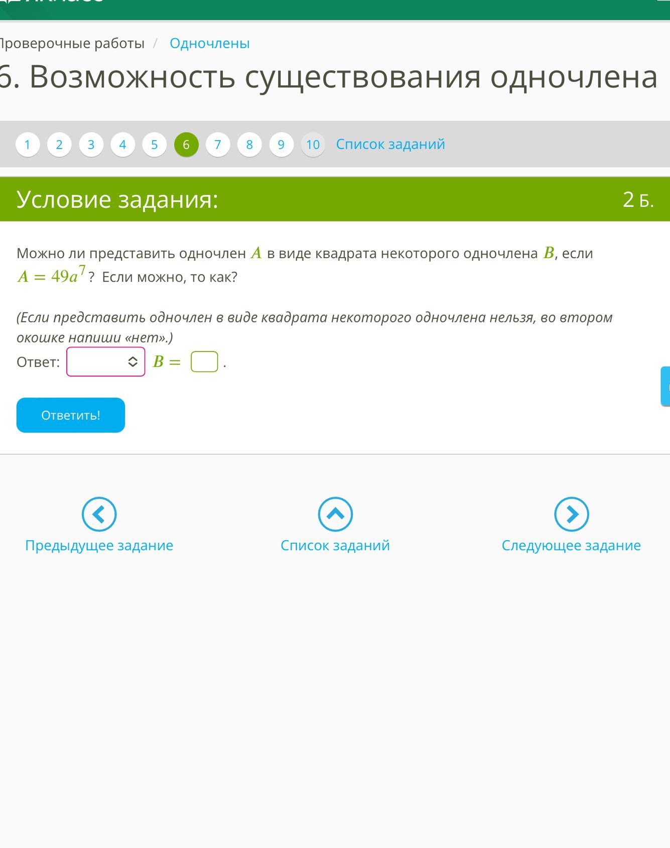 попробуй так: у квадрата стороны все равны напиши тоже число как и в А т.е.49⁷а