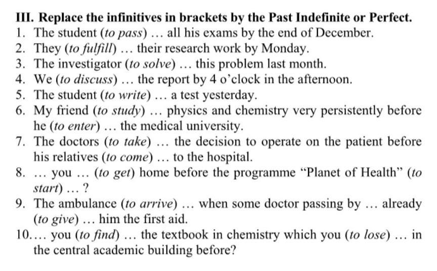 10. Did you find the textbook in chemistry which you had lost in the central academic building before?