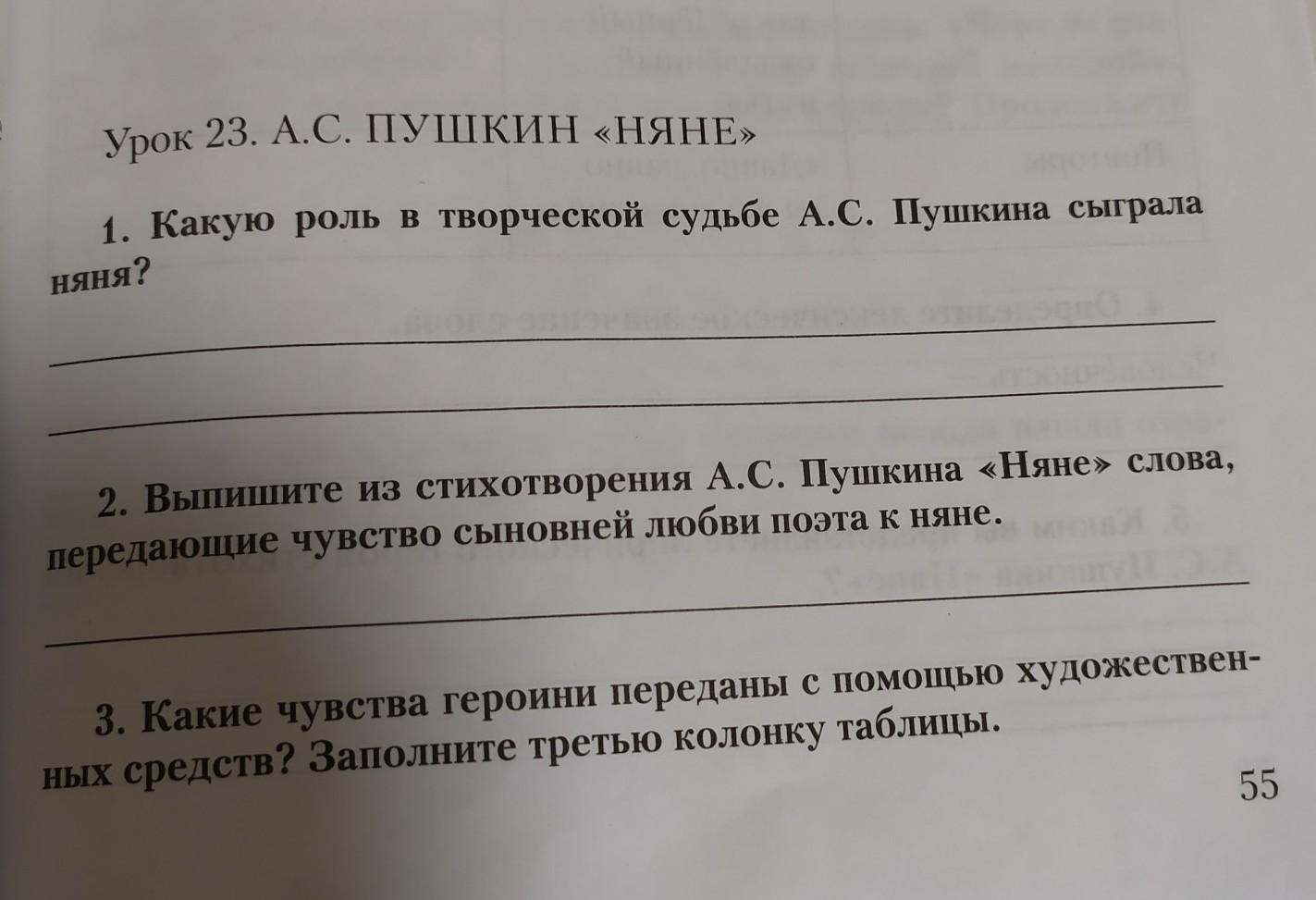 1) Няня сыграла важную роль направляя пушкина к творчеству, помогая советами
