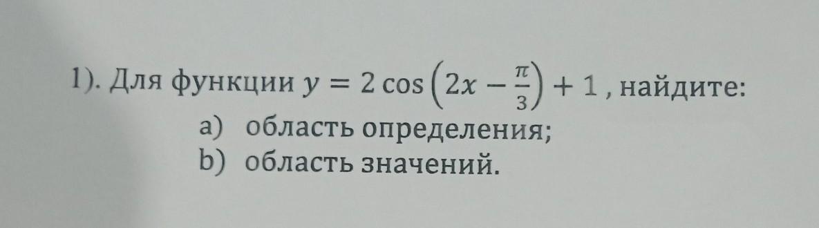 Для функции y = 2 cos (2x – π/3) +1, найдите:
