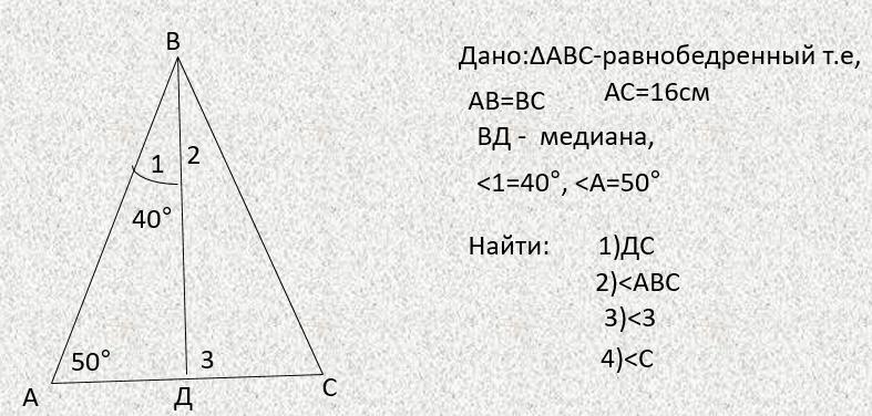 1.) DC = AC/2 = 8, так как BD - медиана ( по условию ).
