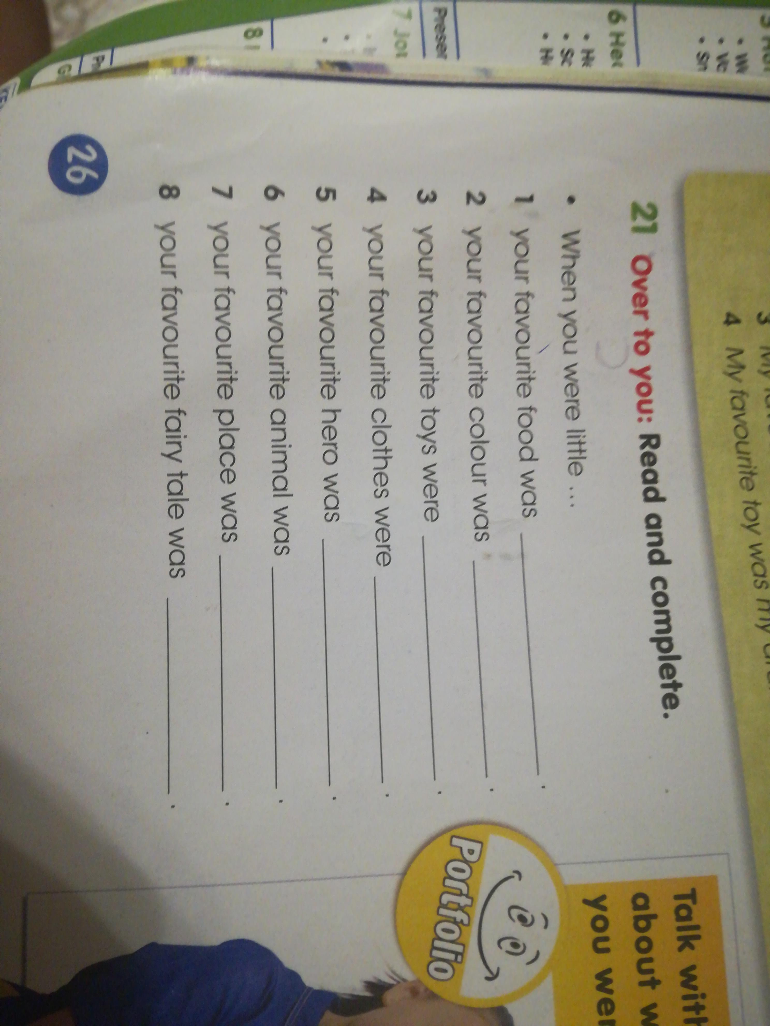это нужно писать про себя типо: когда ты бала маленькой какой был твой любимый цвет