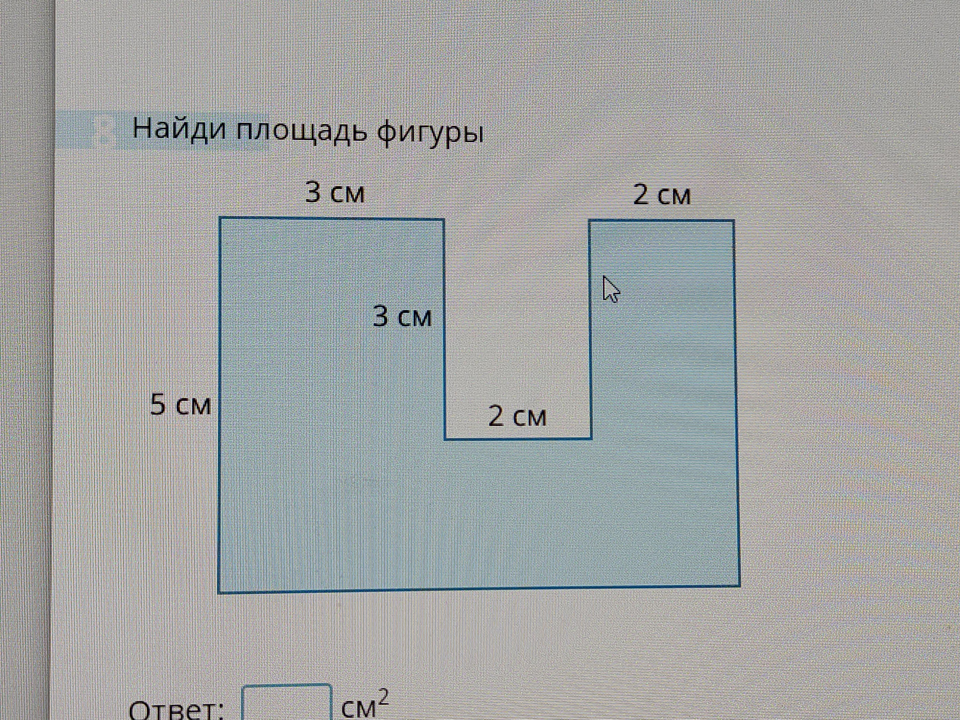 Найдем площадь прямоугольника, если бы в нем не было выреза: