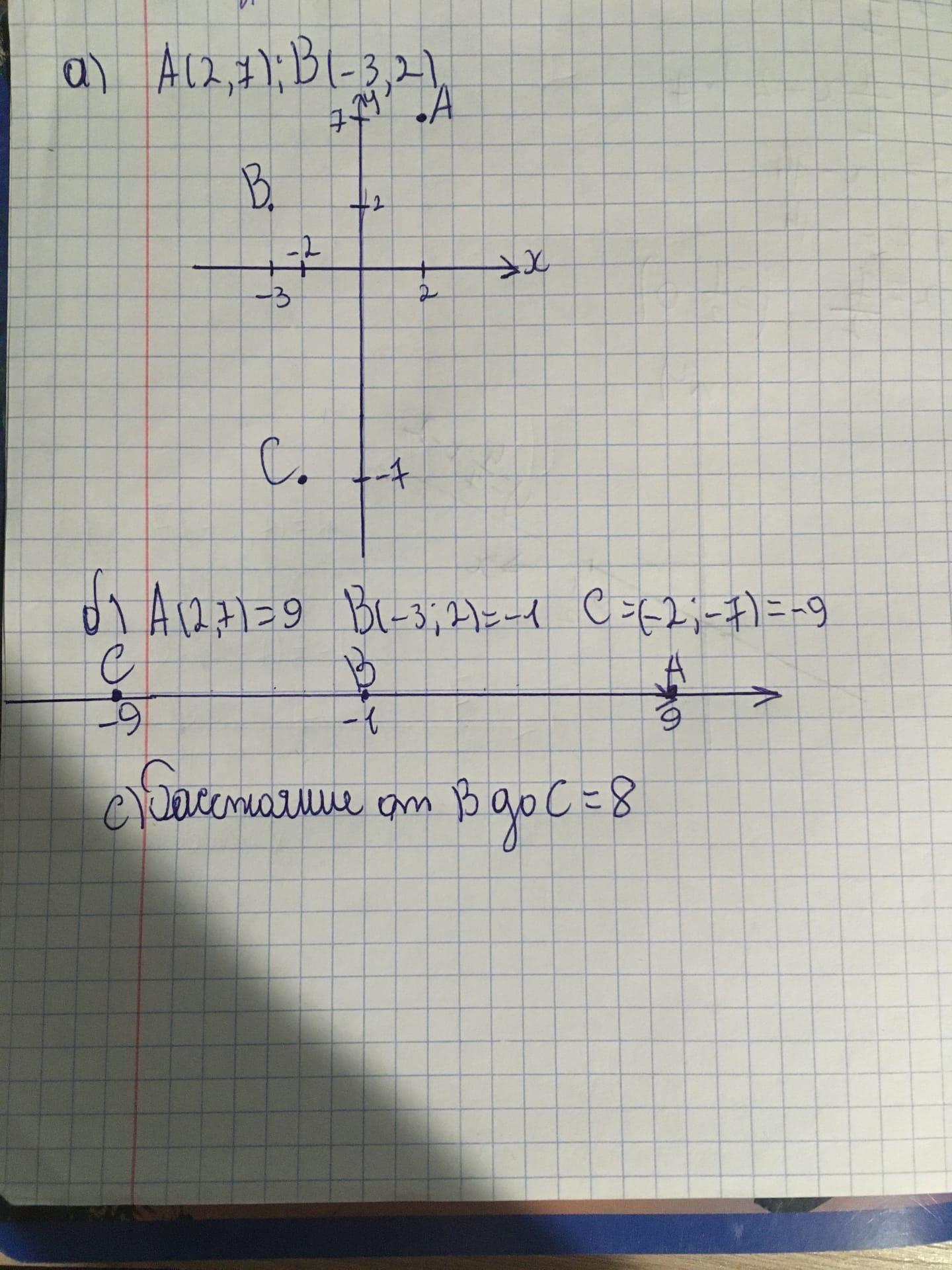 4. Даны точки A(2, 7) и B(- 3, 2) ) Найдите координату точки C противоположную координате точки А. Изобразите точки А, В и С на координатном луче. Найдите расстояние от точки В до