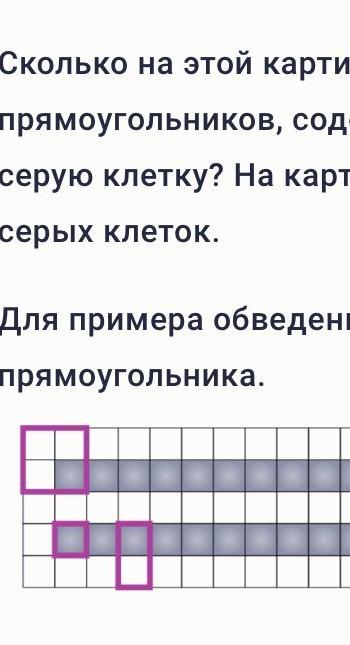 Сколько на этой картинке клетчатых прямоугольников, содержащих ровно одну серую клетку? На картинке 2 *19 — 38 серых клеток. Для примера обведены три таких прямоугольника.