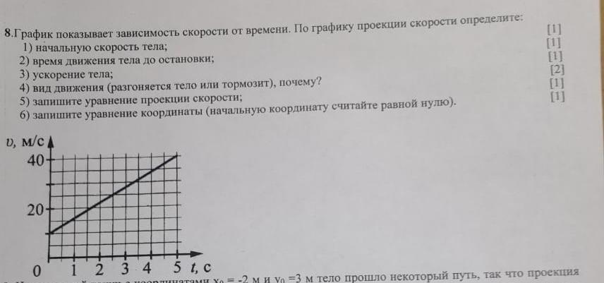 график показывает зависимость скорости от времени. По графику проекции скорости определите: