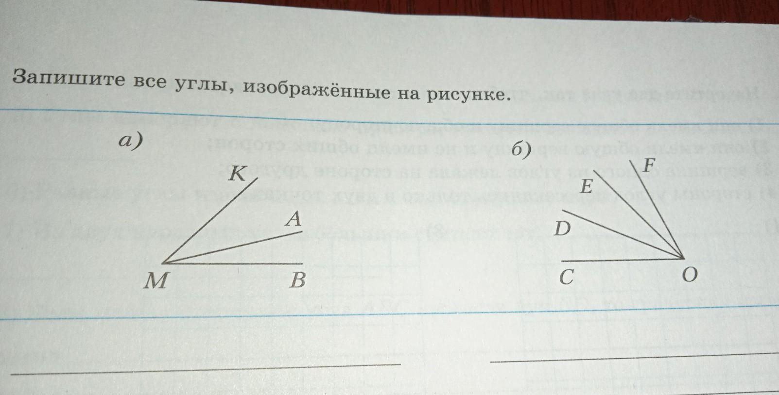а)угл КМА; угл КМВ; угл ВМА. б)угл СОD; угл СОЕ; угл СОF; угл FOE; угл FOD; и угл FOC