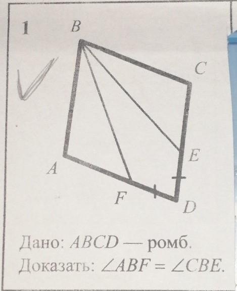 FD=ED и АВСD ромб, отсюда следует что АФ и ЕС равны, а АВ=ВС и АD=DC по определению,