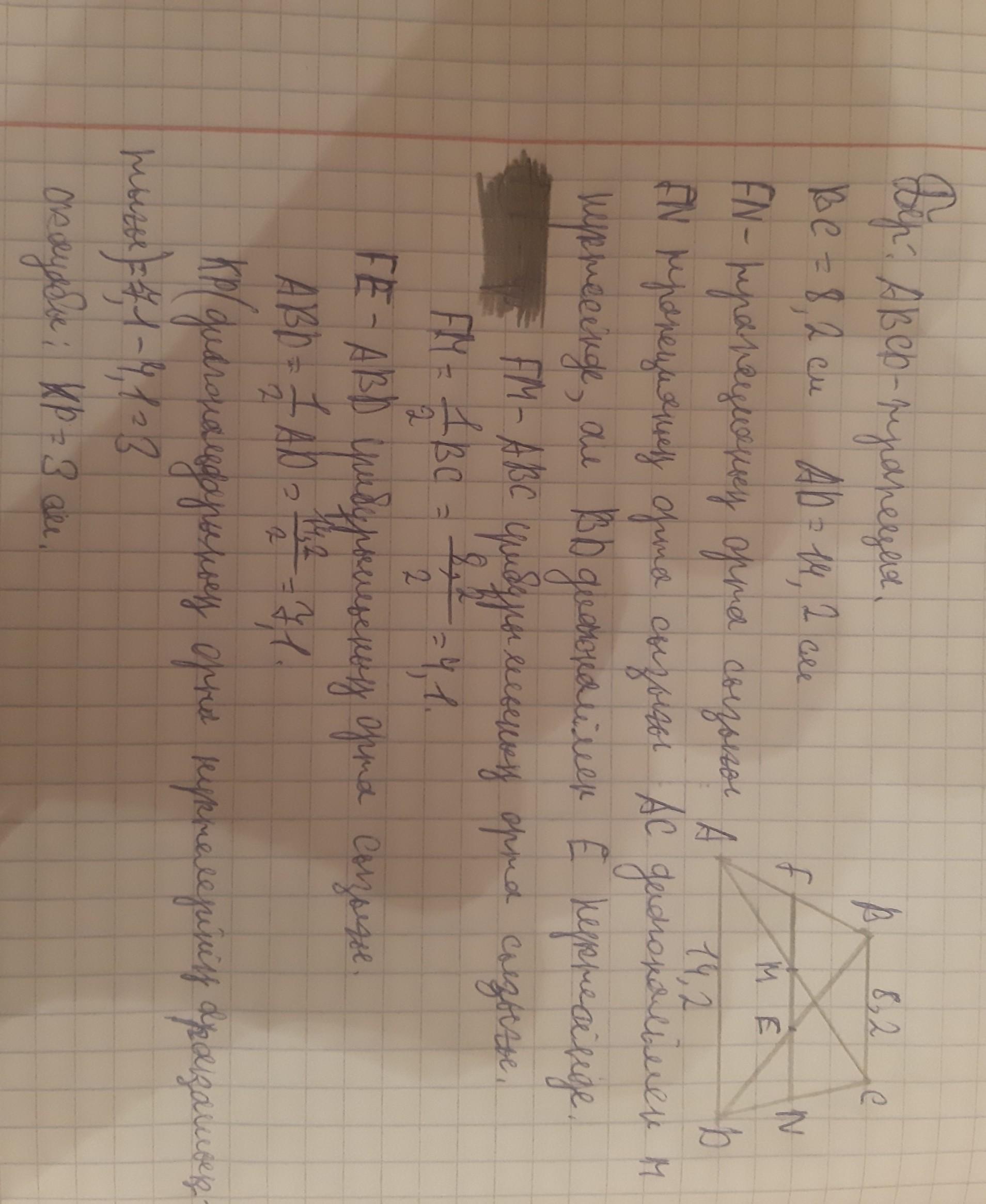 1.142. Трапецияның табандары 8,2 см және 14,2 см.Диагональдарының орта нүктелерінің арақашықтығын табыңдар