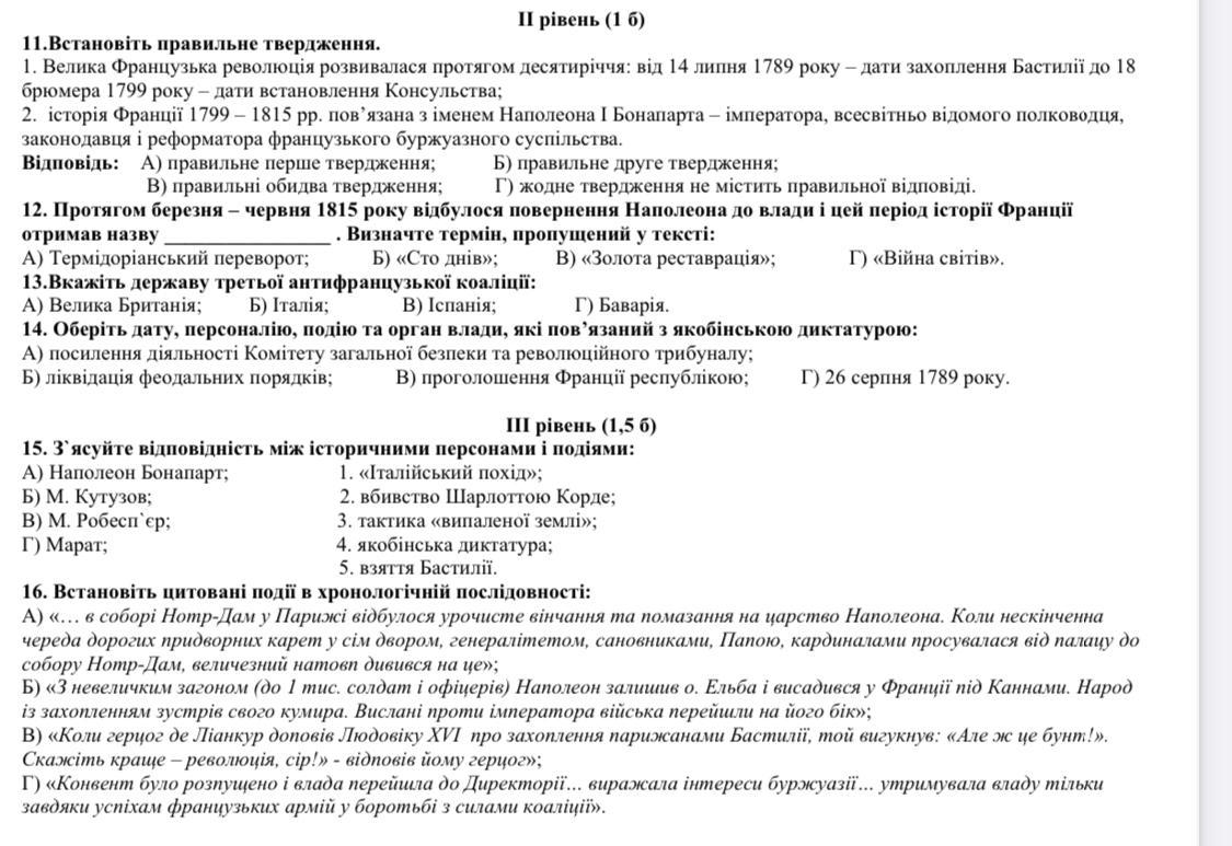 ІІІ рівень (1,5 б) 15. З`ясуйте відповідність між історичними персонами і подіями: