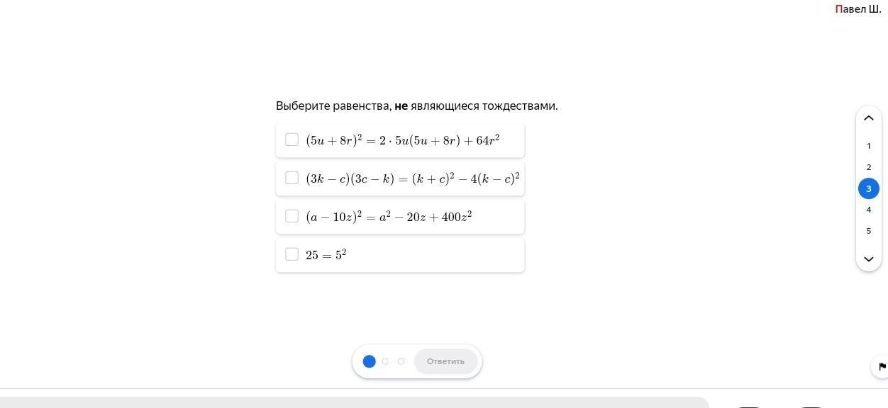 3 вариант будет не правильным . Потому что , ответ был решен не по формуле (a-b)^2