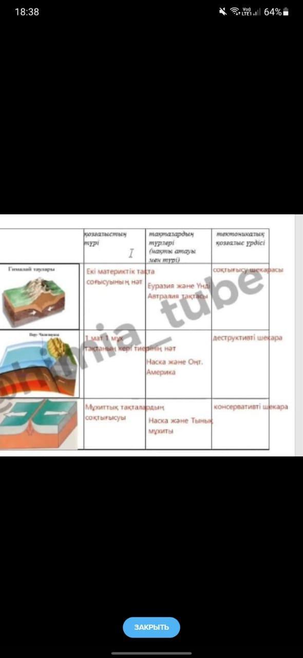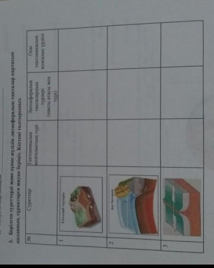 берілген суреттерді және дүние жүзілік литосфералық тақталар картасын қолданып сұрақтарға жауап беріңіз. кетені толтыр