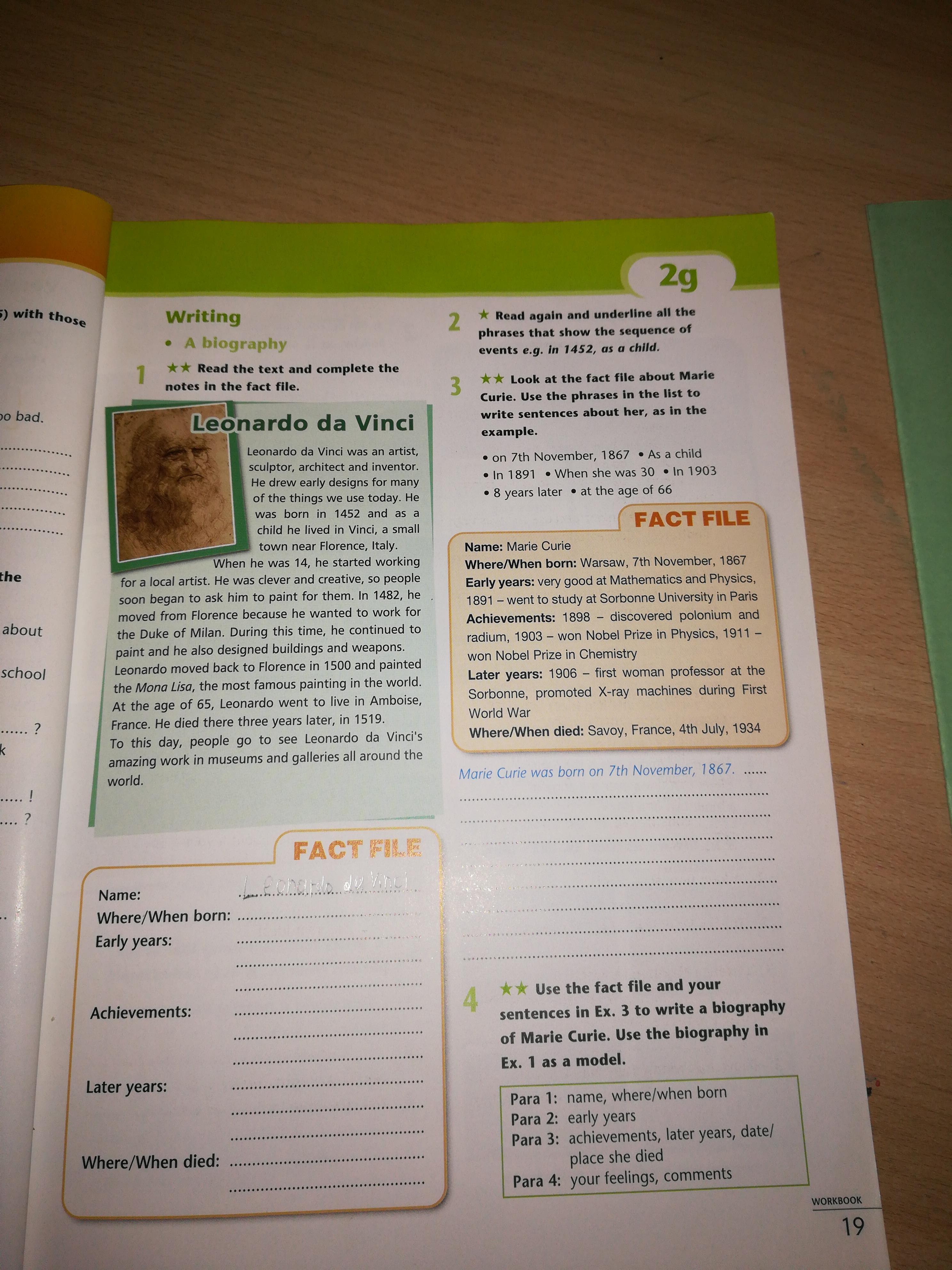 Read the text and complete the notes in the fact file. Нужно составить таблицу как в 3. Про Леонардо Давинчи