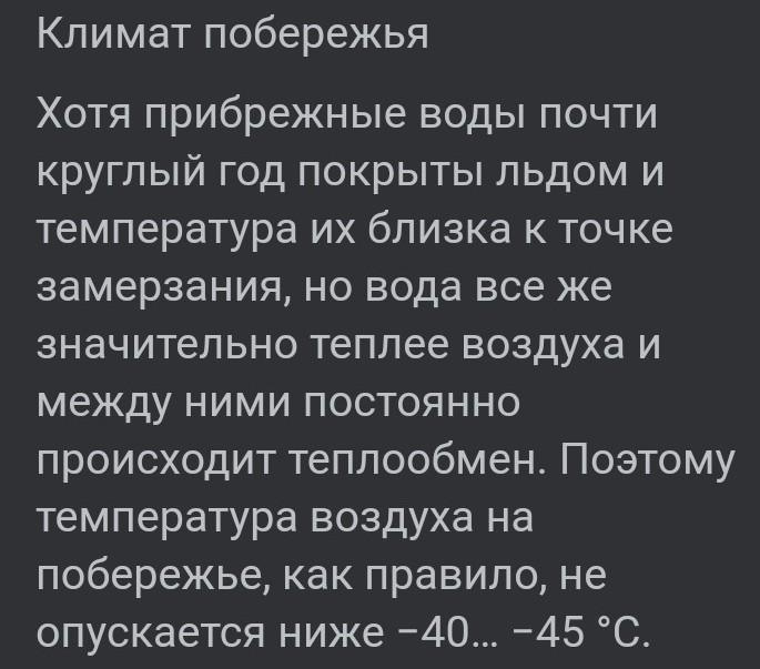 потому-что прибрежные воды почти круглый год покрыты льдом и температура их близка к точке замерзания, но вода значительно теплее воздуха и между ними постоянно происходит теплообмен.