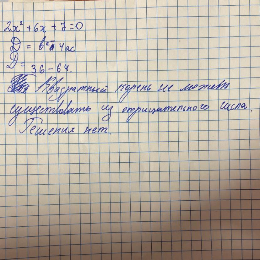 решения нет, так как квадратный корень не может существовать из отрицательного числа.