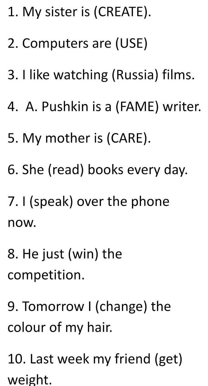 задание: измените слова так, чтобы они лексически и грамматически подходили к содержанию предложения.