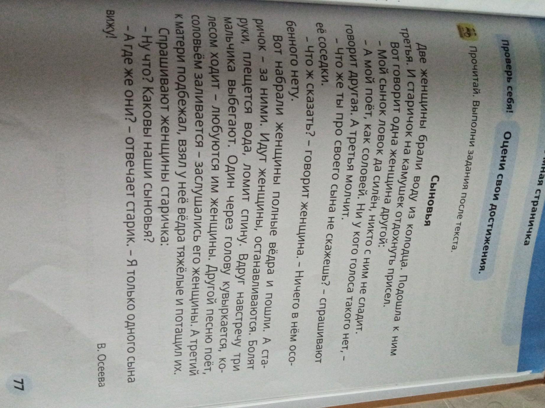 2.основная мысль старика в том что пением и кувырканием сын ни как не поможет матери. третья мать смогла правильно воспитать сына, но стеснялась, потому что думала что другие сыновья будут лучше.