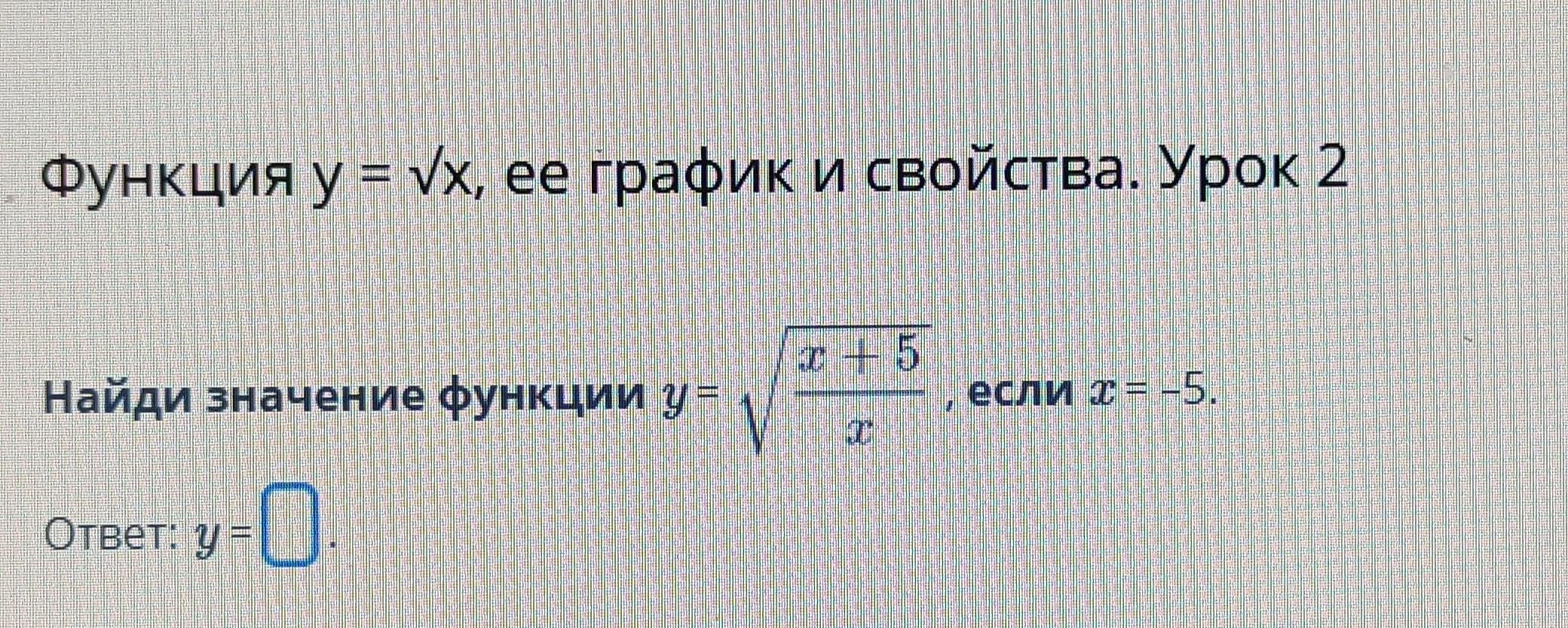Если мы решим полностью данную функцию, то мы получим корень из -5, но т.к корень из неотрицательного числа не существует, то скорее всего y = 0