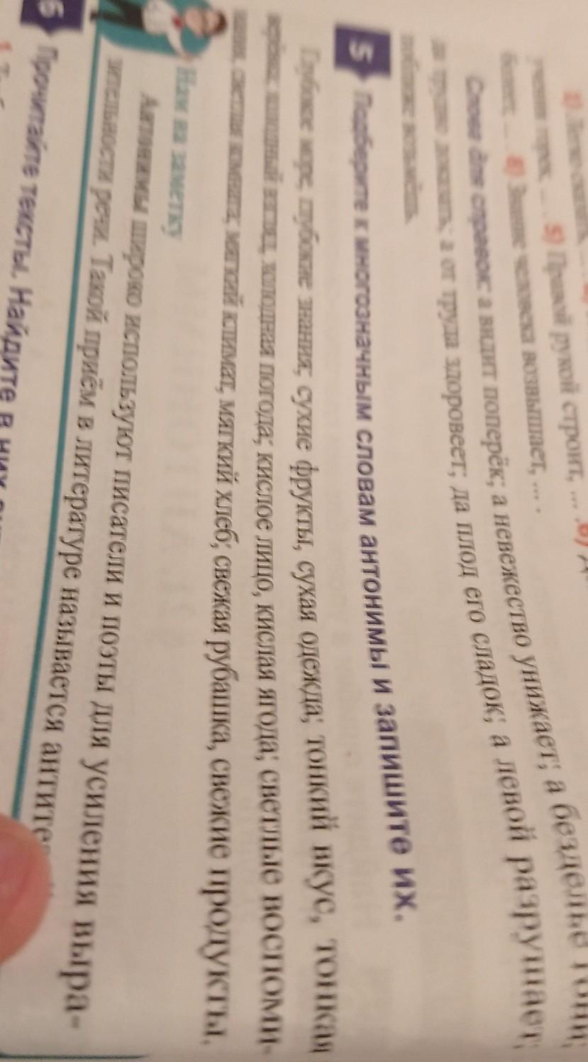 Подберите к многозначным словам антонимы и запишите их. Глубокое море, глубокие знания; сухие фрукты, сухая одежда; тонкий вкус, тонкая верёвка; холодный взгляд, холодная погода; кислое лицо, кислая ягода; светлые вос нания, светлая комната; мягкий климат, мягкий хлеб; свежая рубашка, свежие продуктов